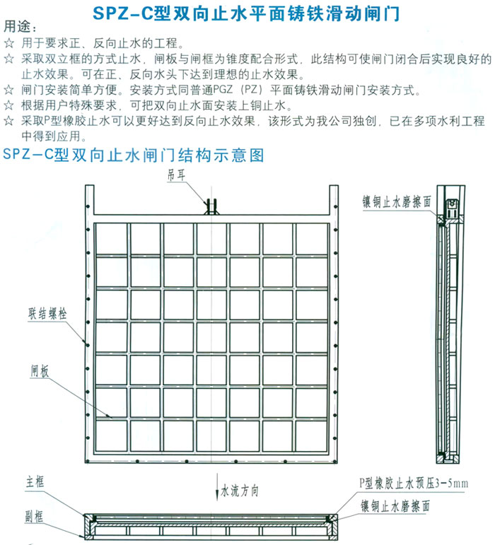 SPZ-C型雙向止水平面鑄鐵滑動(dòng)閘門